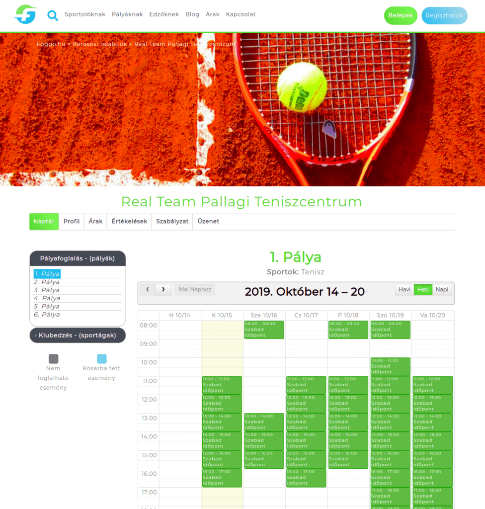 A Foggo oldal segítséget kíván nyújtani a sportolni vágyóknak, hogy könnyebben megtalálják, összehasonlítsák és kiválasszák kedvenc sportáguk pályáit, edzőit vagy akár klubjait a számukra megfelelő szempontok szerint (például ár, helyszín és idő). Ha nincs szabad időpont a megszokott pályán sebaj, mert rendszerünk segítségével pillanatok alatt megtalálhatod, hogy hol van üres pálya a kívánt időpontban a lehető legközelebb.